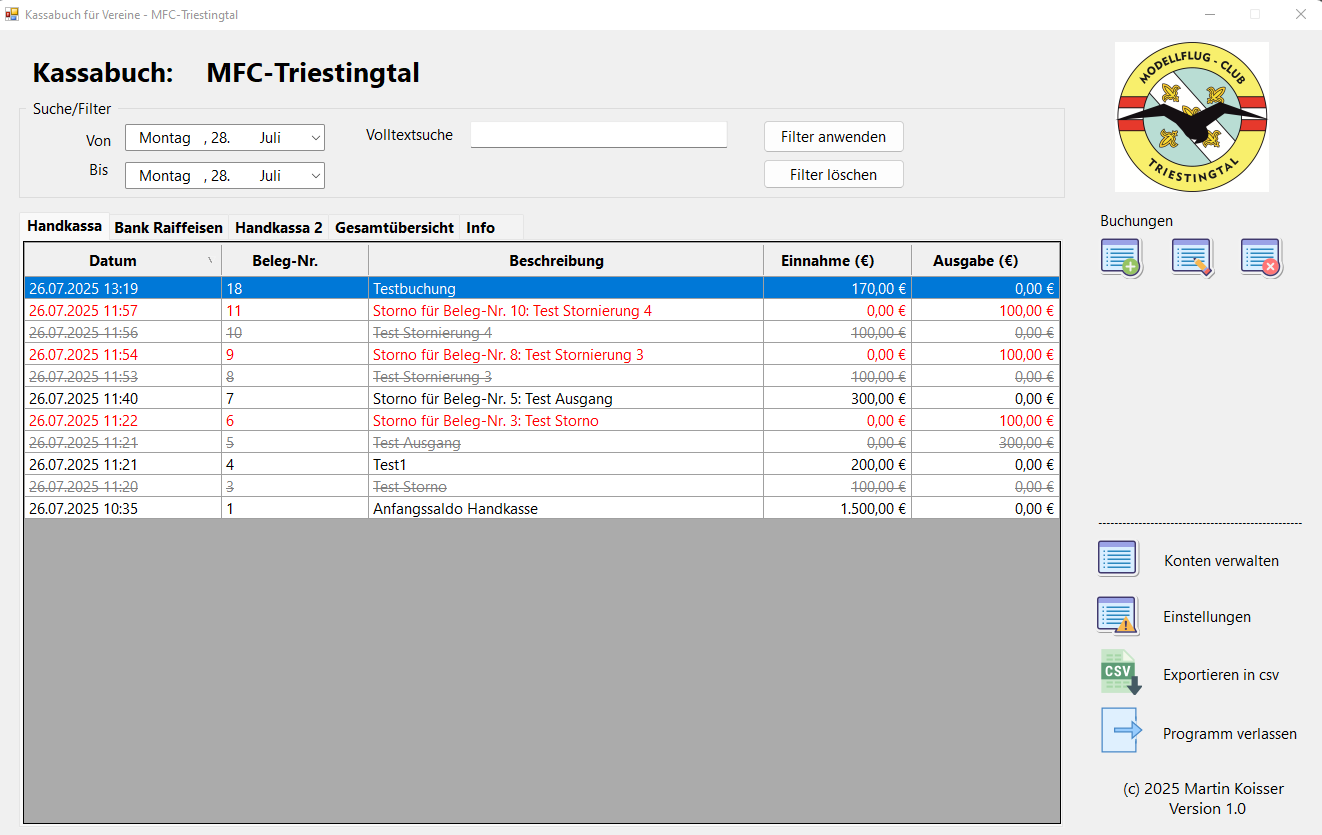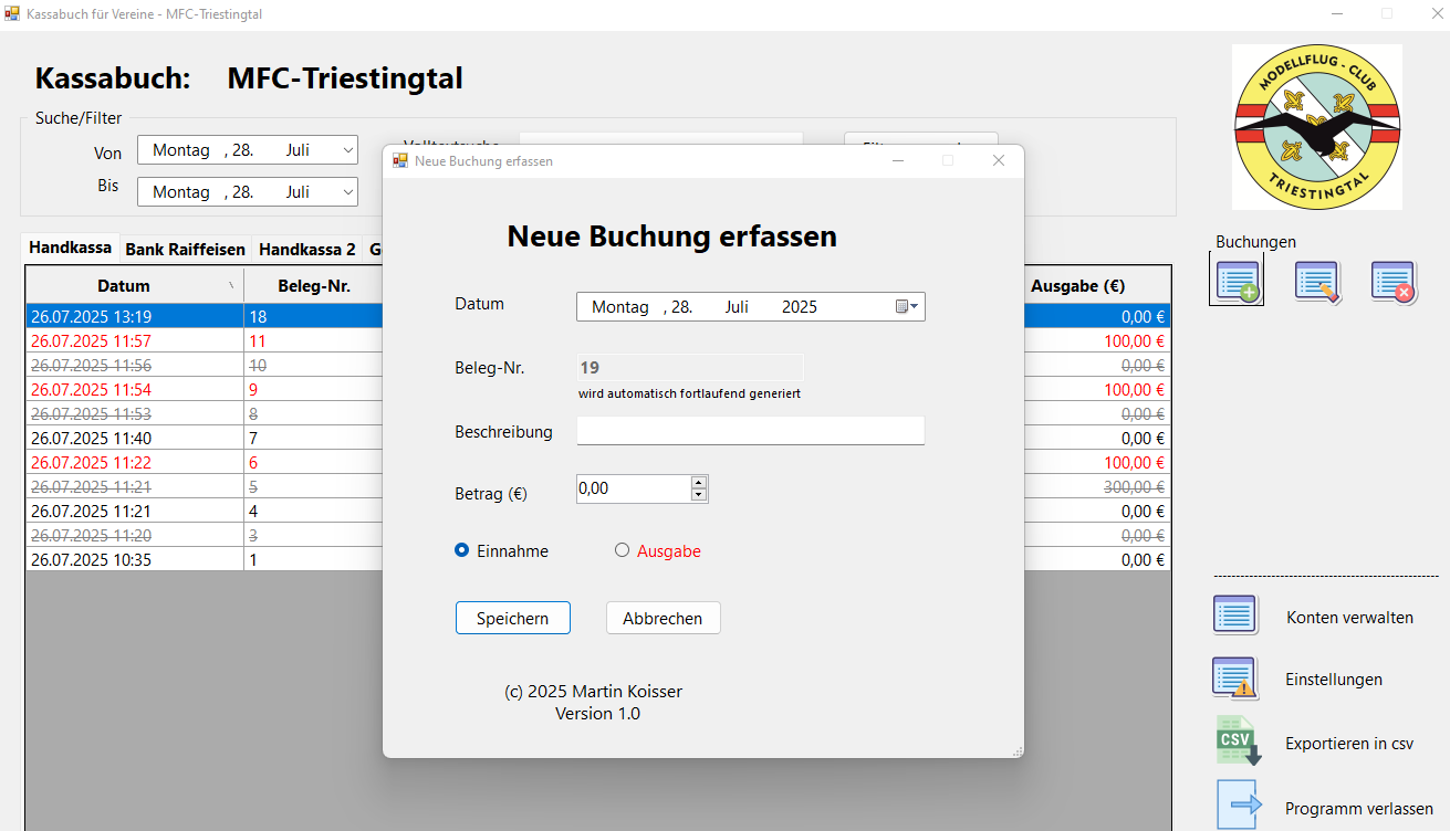 Das Kassabuch ist ein eigenständiges und flexibles Kassabuch, perfekt für Vereine, Selbstständige und kleine Organisationen.